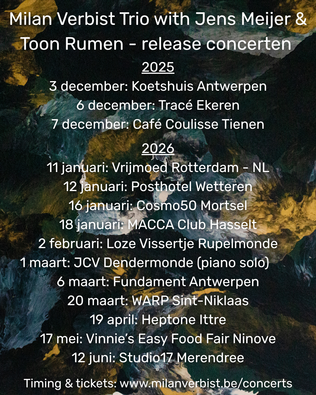 27/9: Album release concert w/ Milan Verbist Trio